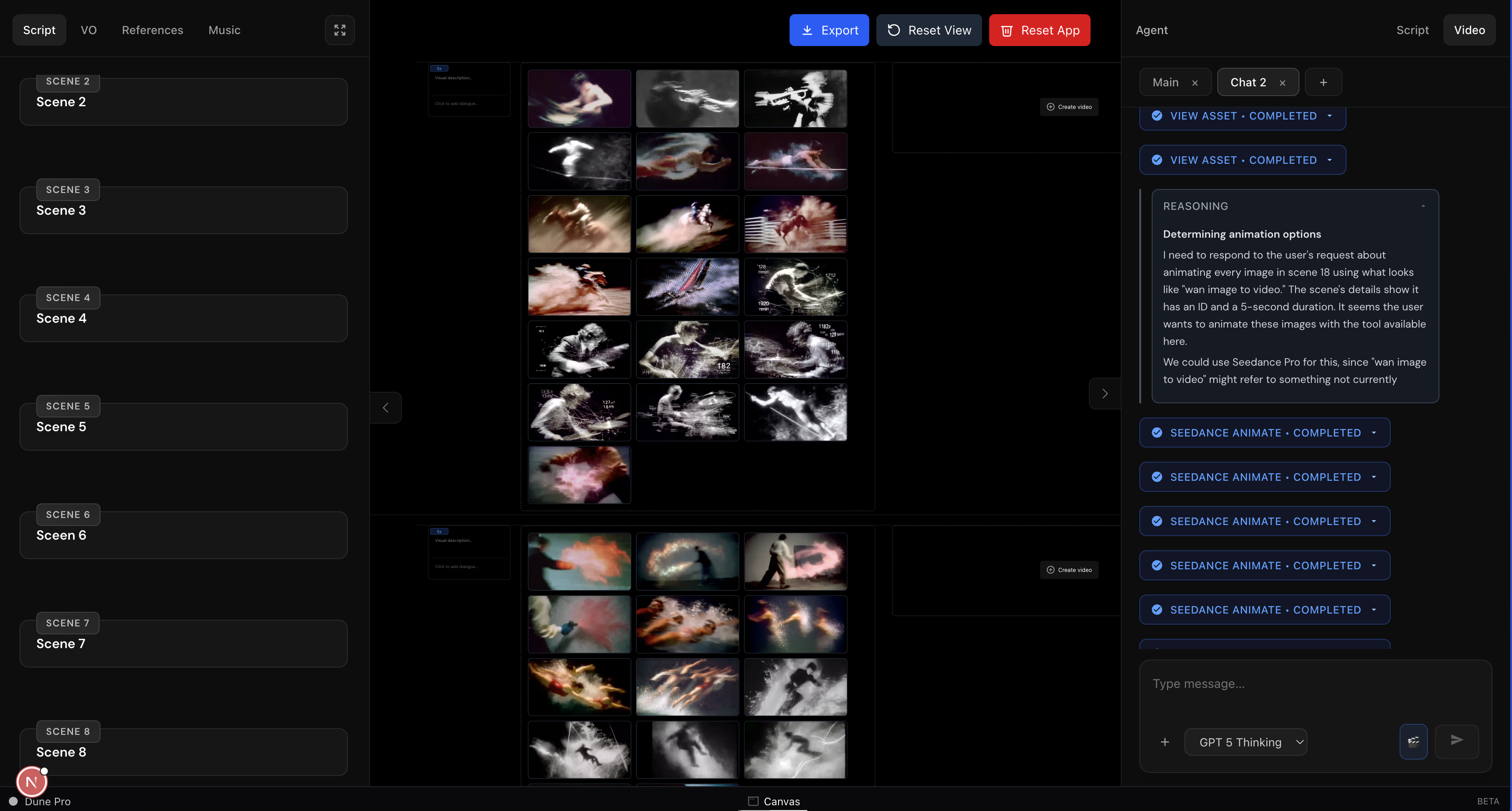 Generation: Autonomous AI agents handle scripting, storyboarding, and video generation — while the creative team oversees every step, stepping in to steer the output when needed. This all happens inside an interactive, Figma-like canvas where you can step in anytime to review progress, give feedback, or steer the direction alongside their creative team.