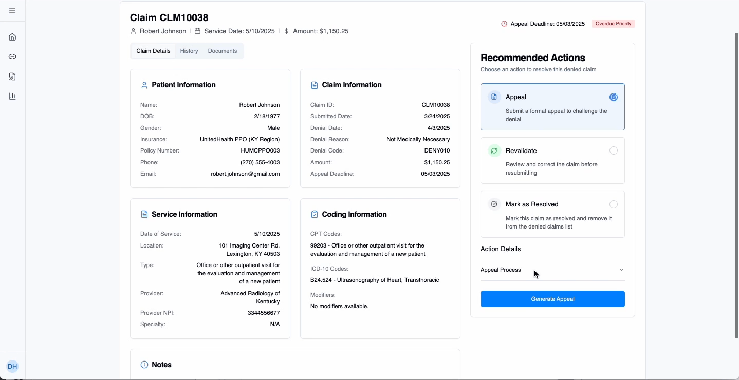 The current process of fighting a denial is manual, time-consuming and riddled with inefficiencies.