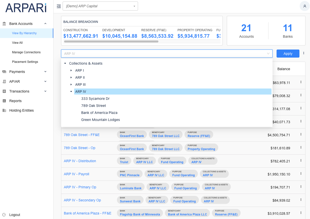 🚀 Recently, they have expanded their focus beyond real estate to satisfy all entity structures. Whether you are a small finance team with a simple account structure or you deal with hundreds of subsidiaries and entities and the complexity that brings, Arpari makes it easy to streamline your bank-related processes.