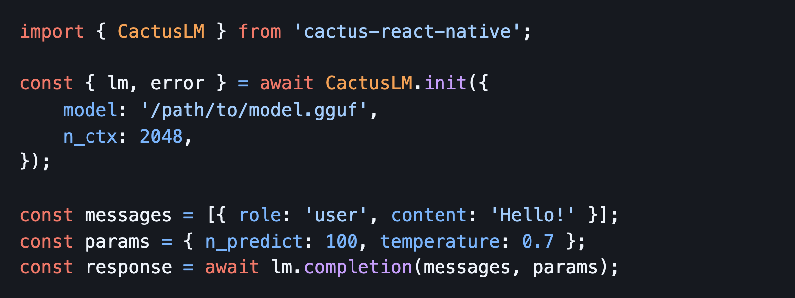 TLDR: Deploy AI models locally, privately, and offline in any app using Cactus. Cactus is a blazing-fast inference engine optimized for smartphones and comes with React Native, Flutter, and Kotlin bindings.