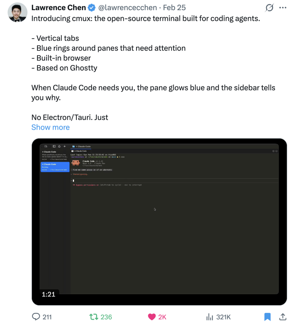 That’s why they built cmux: an open-source terminal primitive for exploring the future of agent-driven workflows.