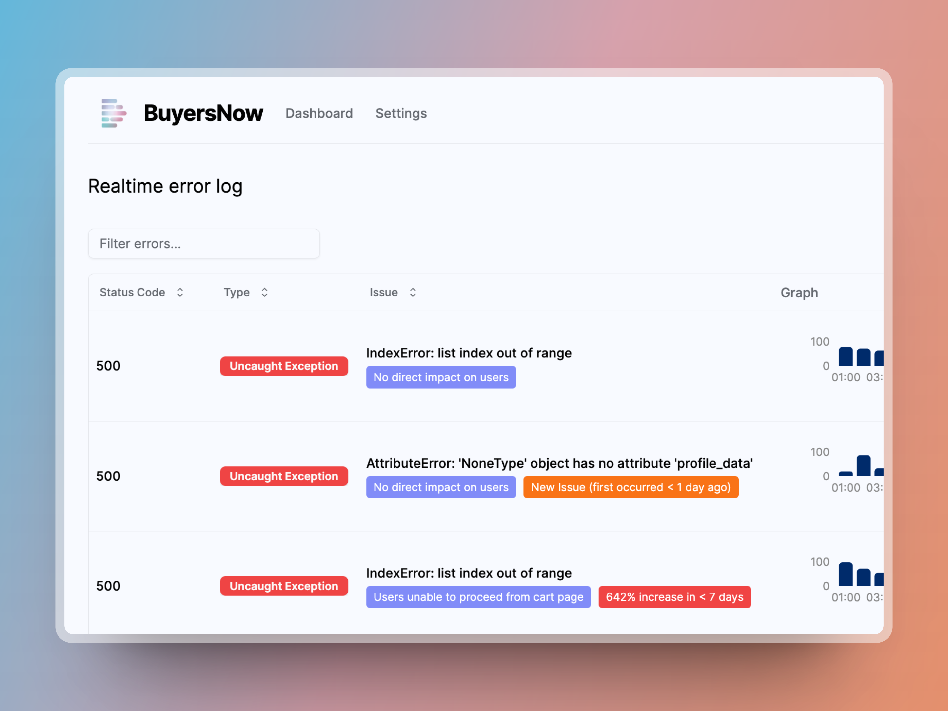 Decipher provides error monitoring built from the ground up with AI. Whenever an error occurs, it helps engineers figure out what went wrong, the user impact, and how to fix it.