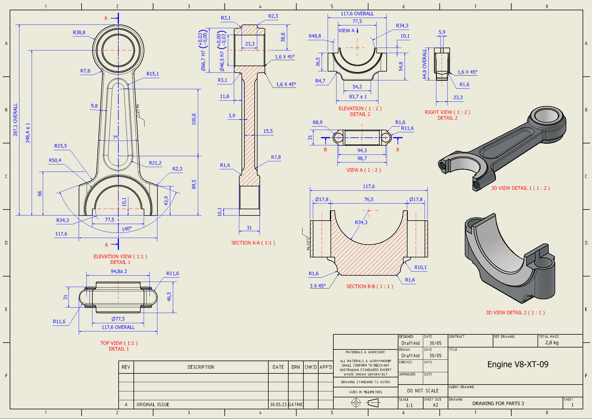 Modern design teams initiate their design by 3D modeling. To get their design manufactured, they need to make 2D drawings that look something like this: