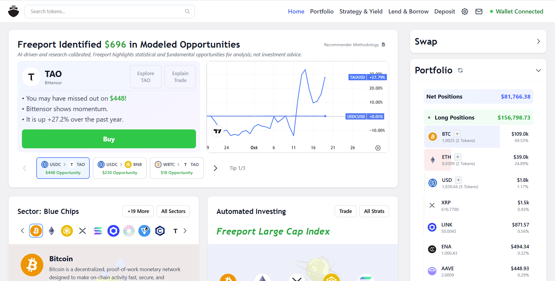 TL;DR: Freeport helps you build a diversified crypto portfolio across quality assets, and access the most trusted and lucrative opportunities in DeFi on one page, with one click.