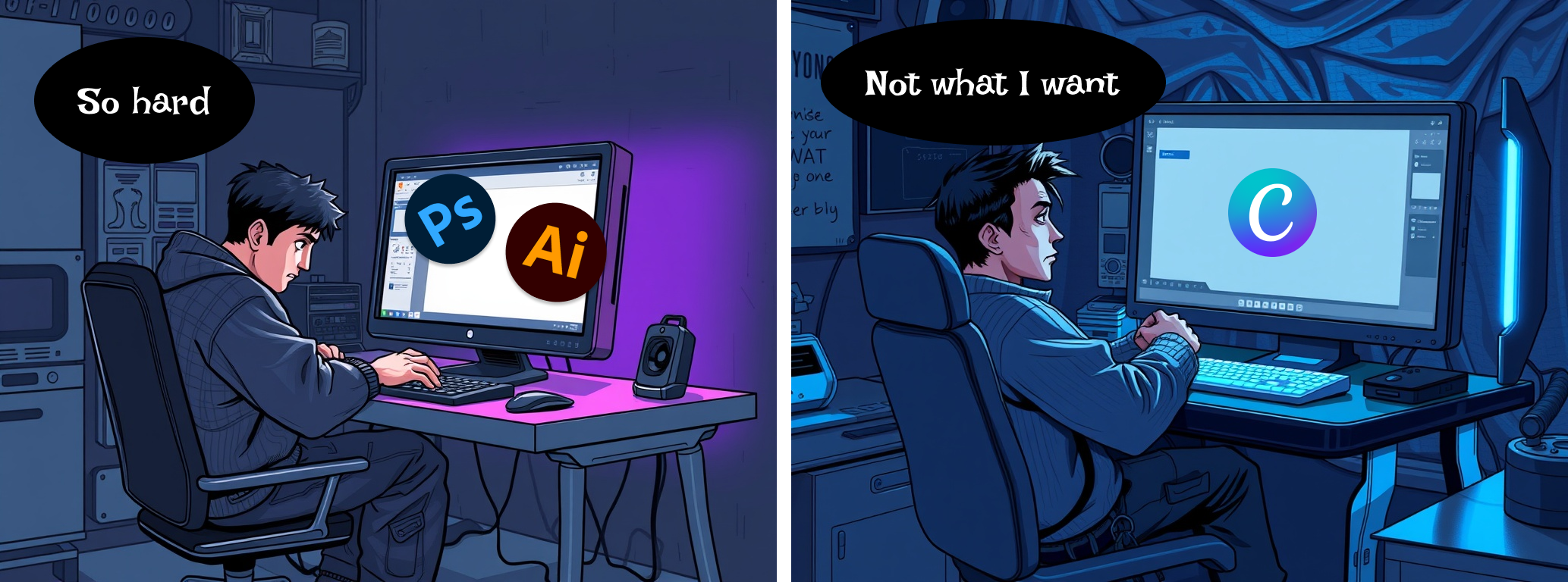 Design tools are stuck at two extremes: powerful but complex, or simple yet limiting. This seemingly inevitable tradeoff affects millions of content creators trying to stand out with their thumbnail designs, the critical window to connect with their audience.