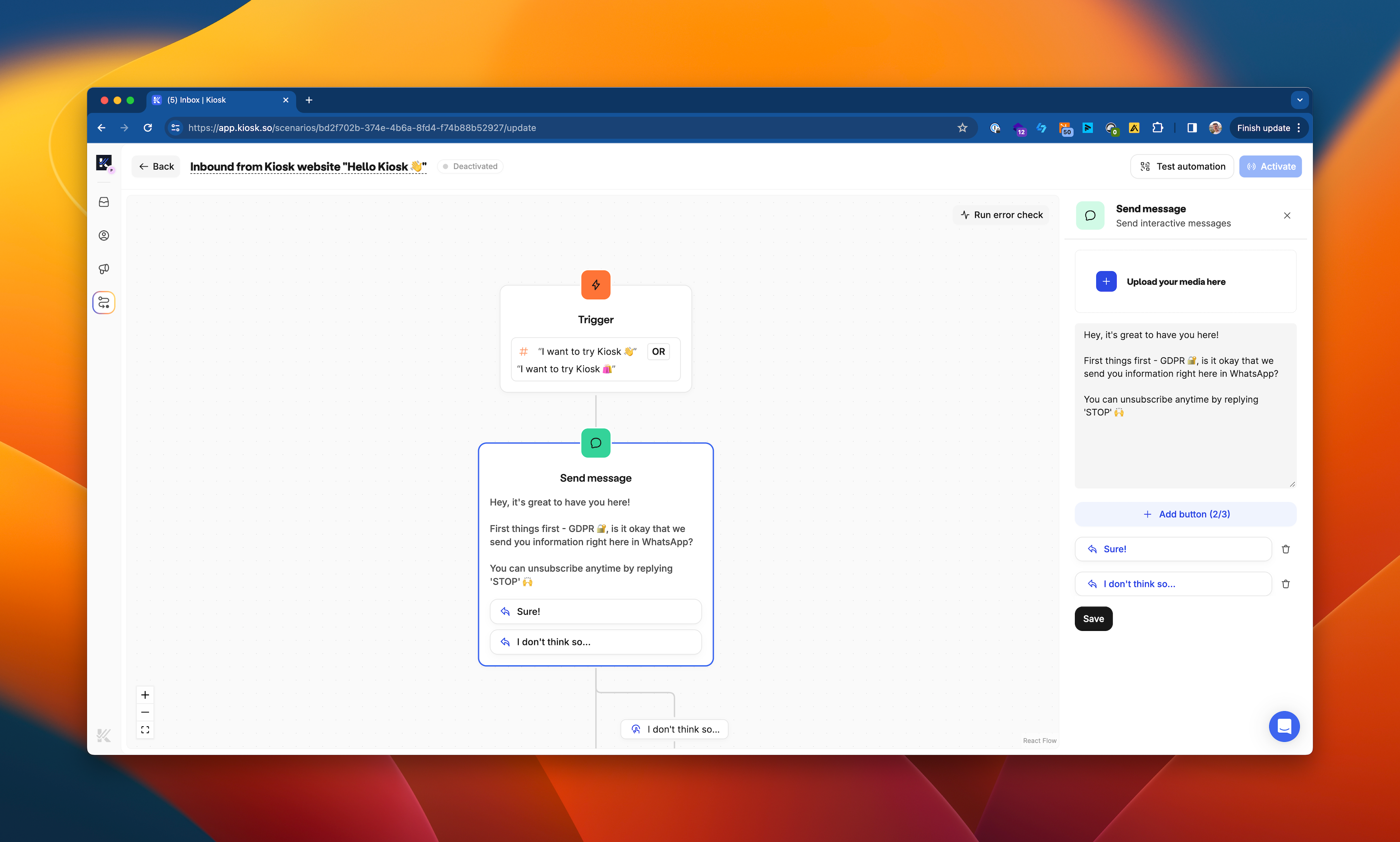 Create an interactive WhatsApp automation, from scratch or a template.