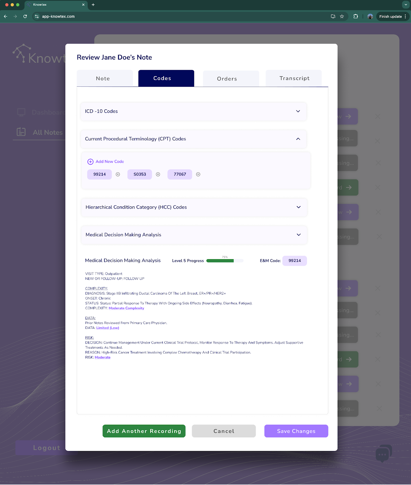 Knowtex makes sure every detail is captured without breaking focus for clinicians, especially in complex specialties like hematology and oncology. It’s a seamless experience that helps practices keep up with fast-evolving coding standards and prevent revenue leakage.