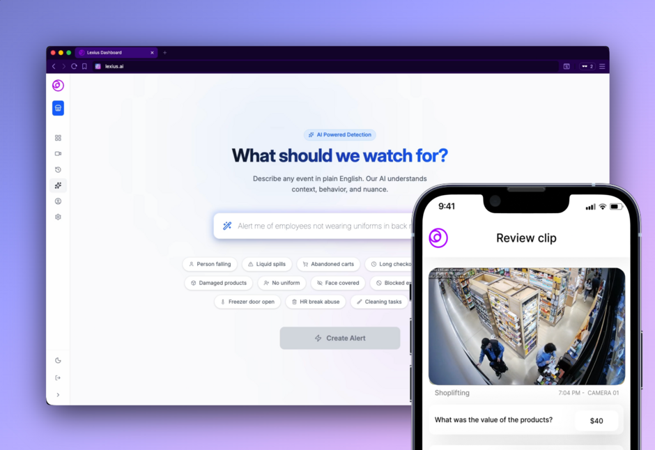 TL;DR: Lexius turns existing security cameras into AI security guards that detect theft, prevent liability, and turns months of video into searchable answers. Trusted by 7-Eleven, Erewhon and Prada.