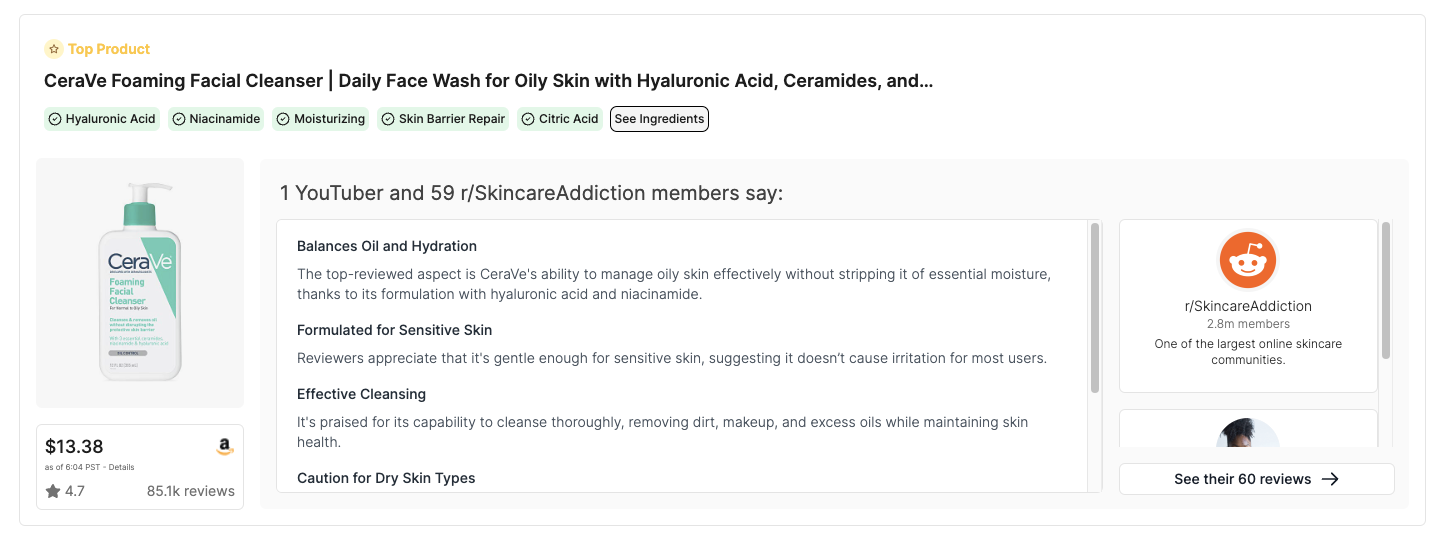 By serving Reddit and YouTube reviews directly alongside the product, Lumona simplifies the product research process into one tab and search while giving you more confidence when you’re buying a product. Right now, they currently support skincare, and are excited to see what you think!
