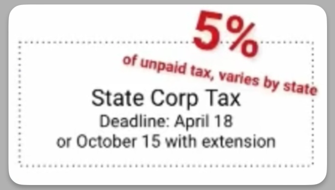 The penalty for unpaid taxes at the federal level is 5% of the unpaid tax. However, as a startup, depending on your profitability, you likely do not owe much in federal taxes, so this penalty may not pose a significant risk.