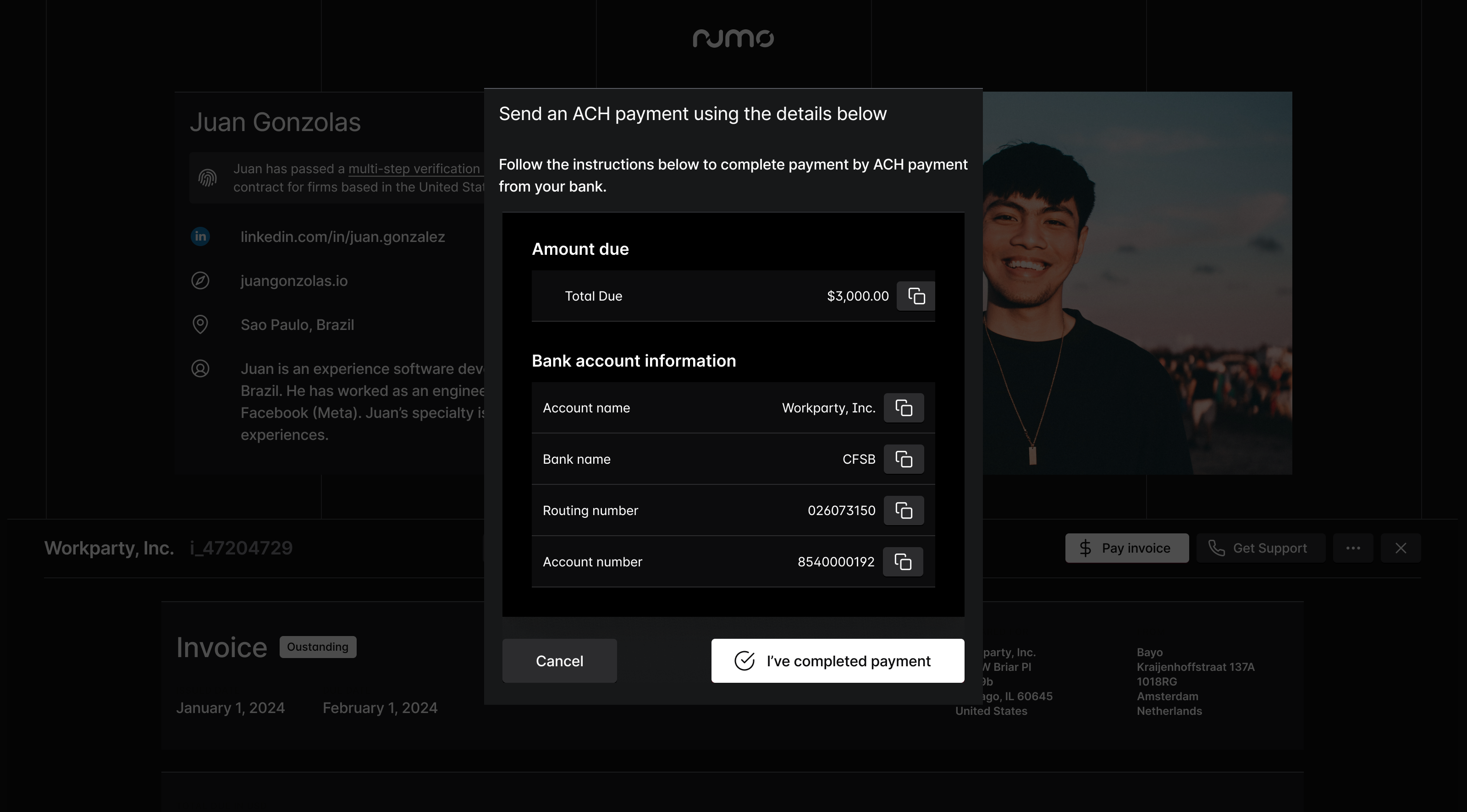 3. Their American clients get to pay the way they are most comfortable: ACH payment to a US bank account.