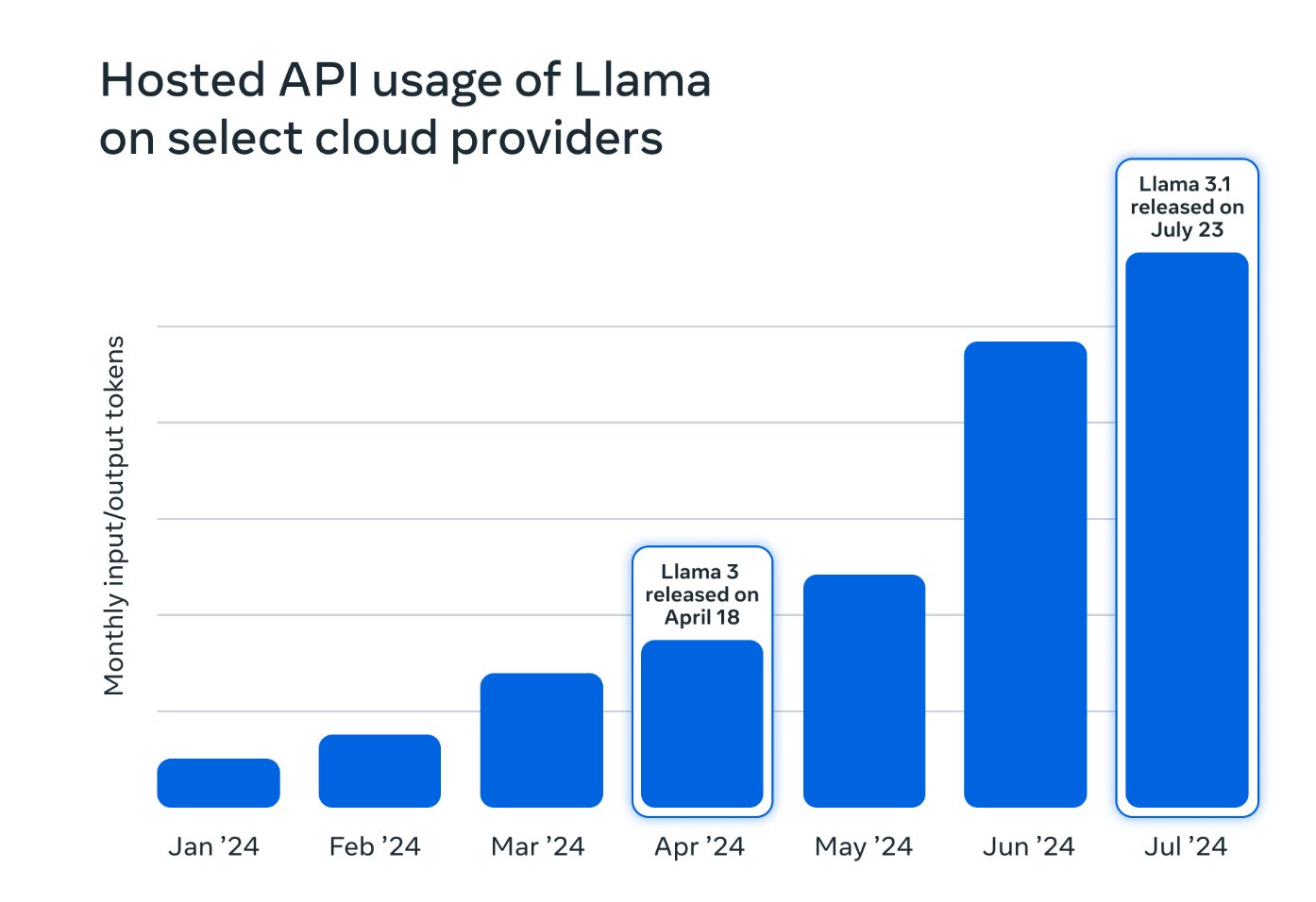 Llama usage by token volume across major cloud service providers has more than doubled in just three months from May through July 2024 when Llama 3.1 was released.