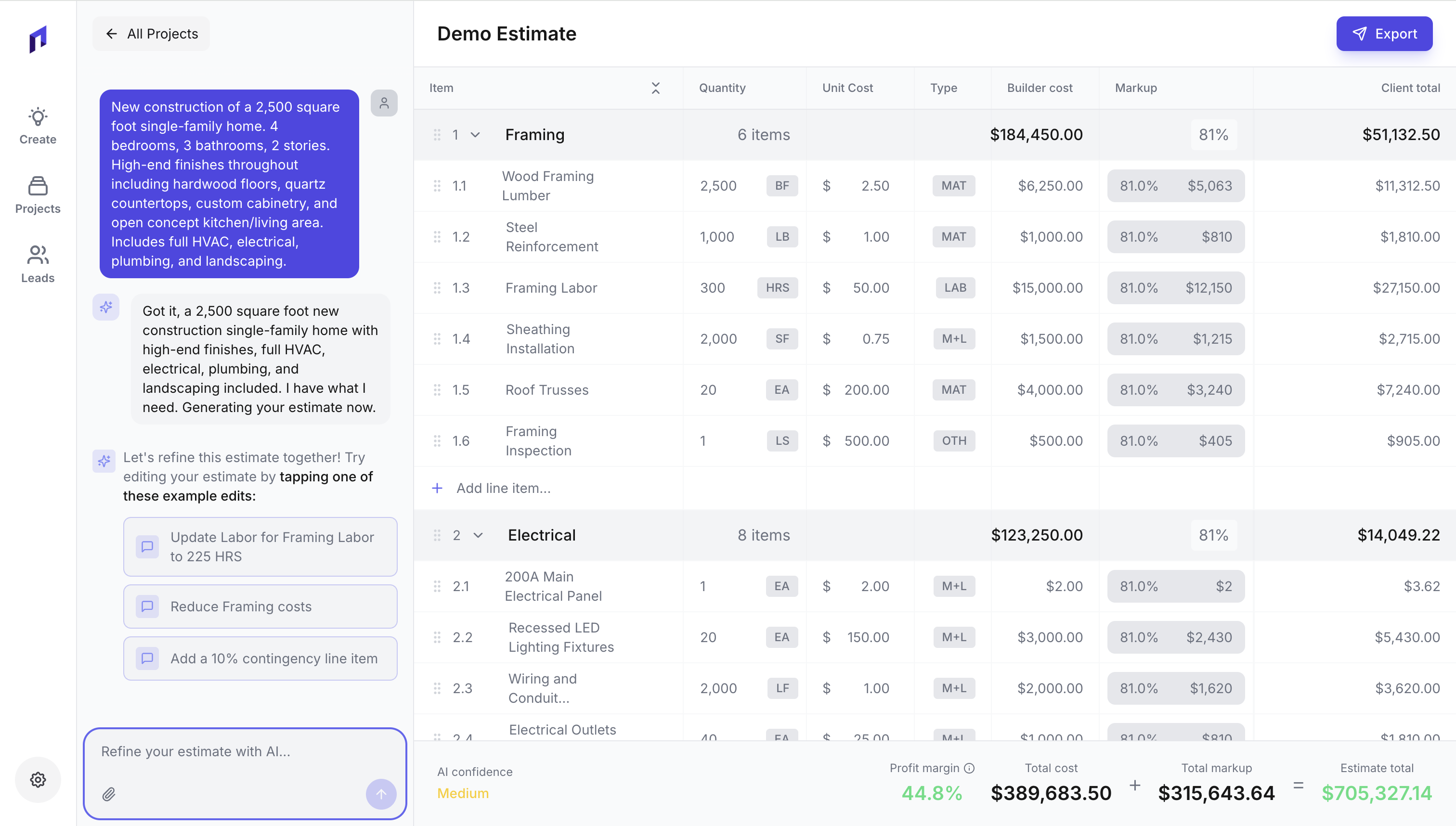 Estimating doesn’t fit real life: Creating a proper bid means reviewing plans, scoping labor and materials, and assembling a proposal — work that’s hard to do while managing active builds.