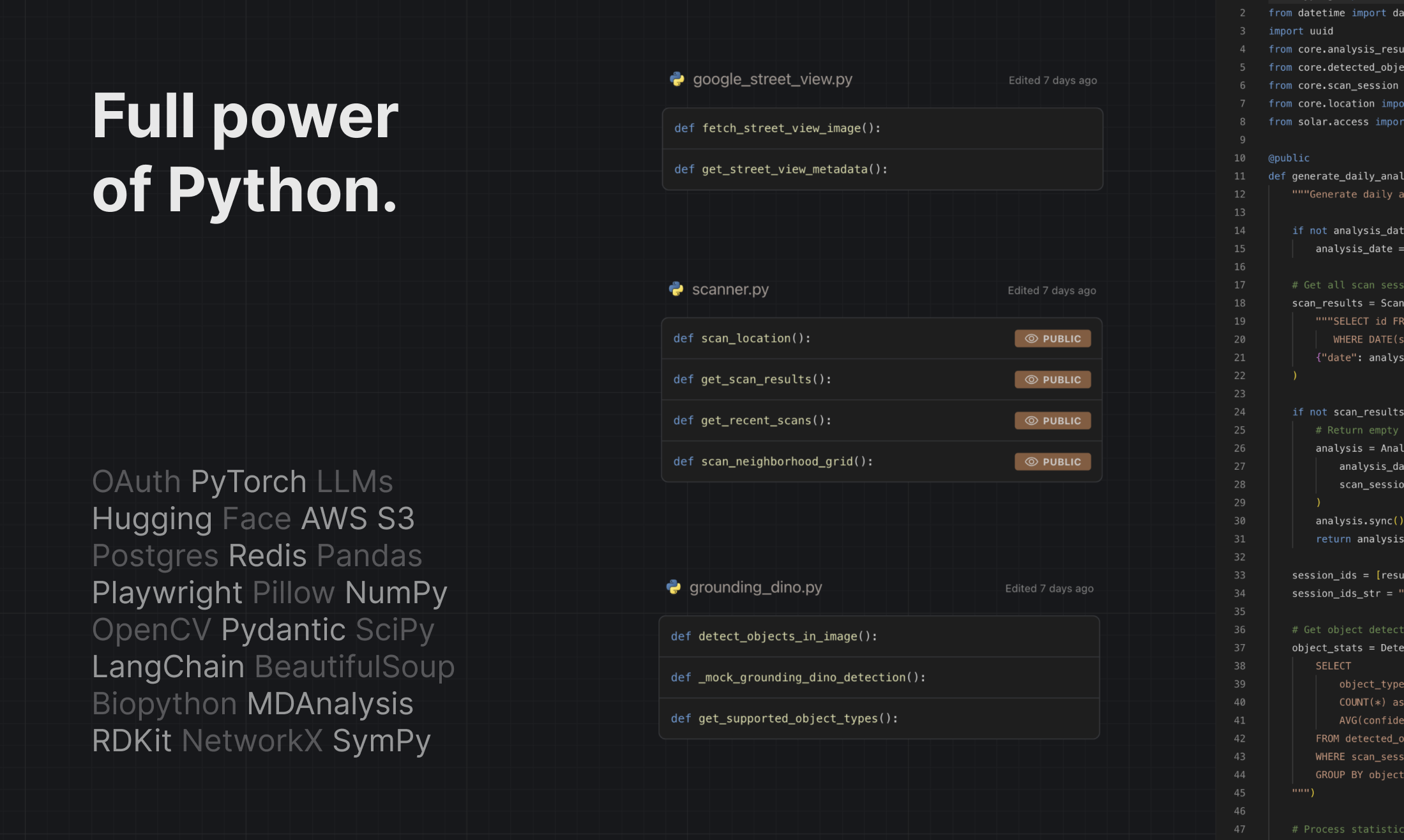 Solar’s AI agents collaborate alongside you on a multiplayer canvas. You can see the relationships and data flow between database tables, backend Python logic, and frontend pages.