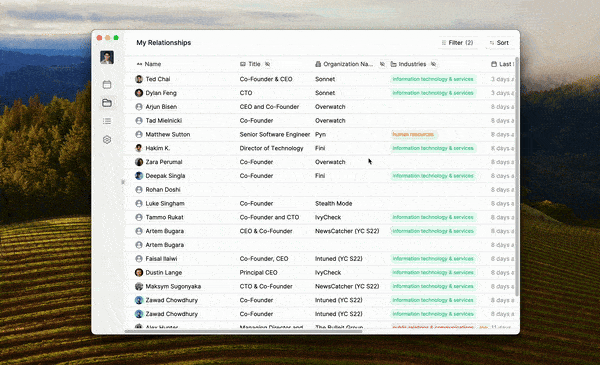 Sonnet has a built-in CRM, auto-updated with your conversation data.