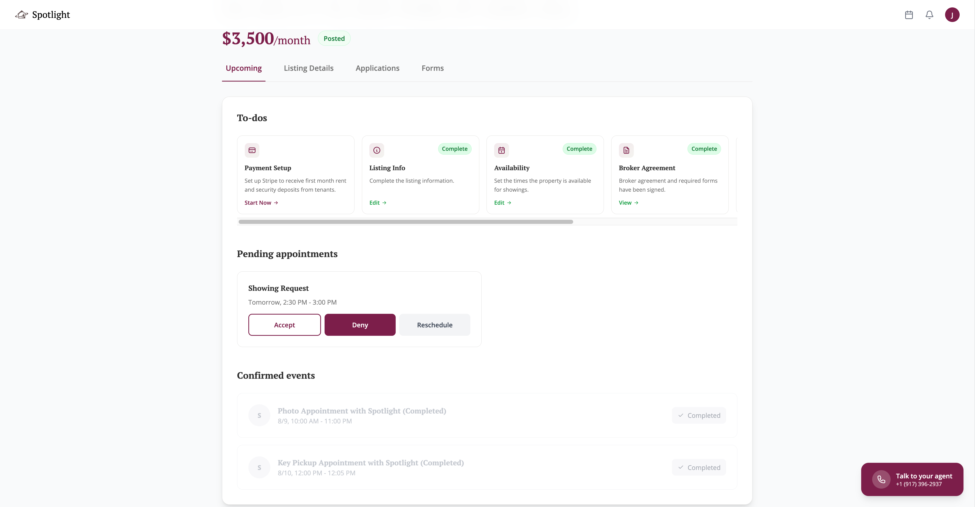 Spotlight makes listing easy. Fill out your property details and select a time to speak with one of their agents. In their meeting, the team will discuss your specific goals on pricing and timing, along with what’s necessary to get your unit ready for market.