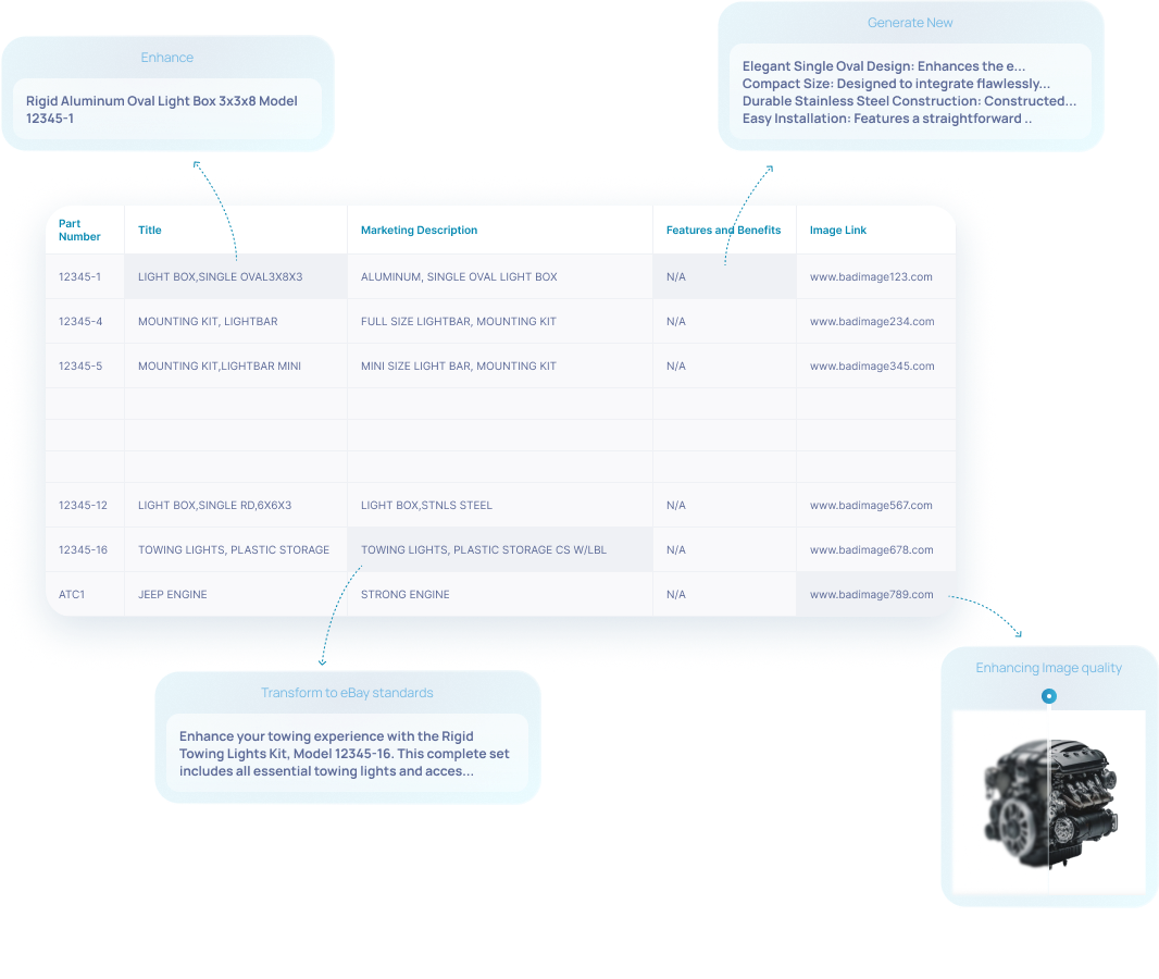 Most aftermarket catalogs were built decades ago and are not designed for modern digital demands. Product data lives in silos, lacks standardization, and requires deep domain expertise to classify correctly.
