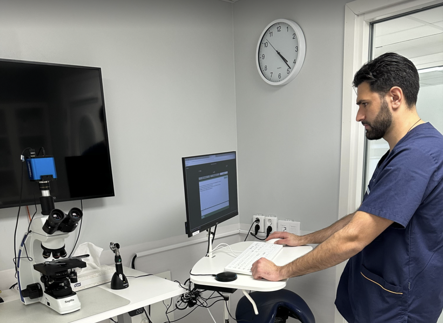 📸: A veterinarian at Evidensia is reading through the text on Vetnio after a consultation.