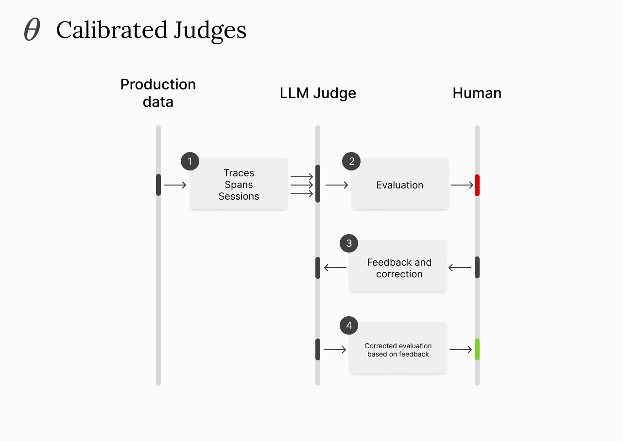 A way to create calibrated LLM judges that get better over time the more production data they see and the more incorrect samples are labeled. The more you teach it on where it's failing, the more reliable it becomes.