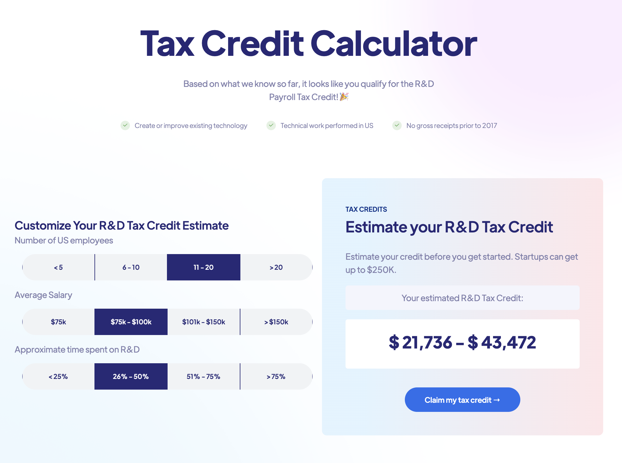 The government offers many Tax Credits to help startups offset research and development costs, hiring employees, and more. Most startups don't know that certain credits offer direct cash back from the IRS — even if the company does not have any profits or owe any income taxes. The average startup we help gets $21,000 back from the IRS. This guide discusses the most beneficial tax credits for startups, how to qualify, and how to claim them.