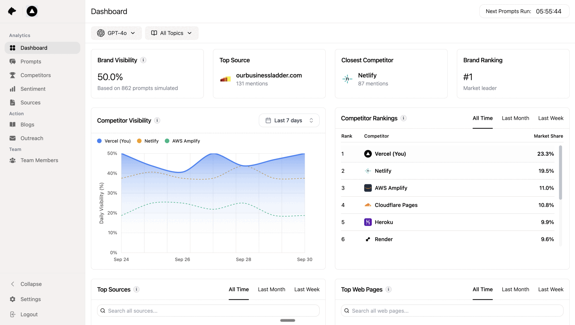 - They gather a lot of data 📊: when your company shows up, when competition shows up, the sources contributing to AI answers, and the exact prompts behind them.