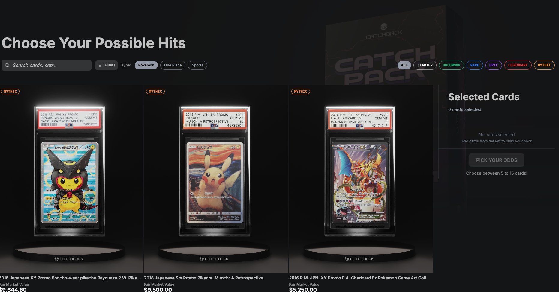 TL;DR: CatchBack Cards, is an iOS and web platform for maximizing the thrill of collecting Pokemon and Sports cards. They allow collectors to create custom mystery packs with personalized chases and customized odds with cryptographically trusted tooling. Users can rip open digital packs and get physical cards shipped to them, receive buyback offers on cards pulled from their mystery packs sent straight to Venmo and PayPal, and buy/sell cards in their $1 marketplace.