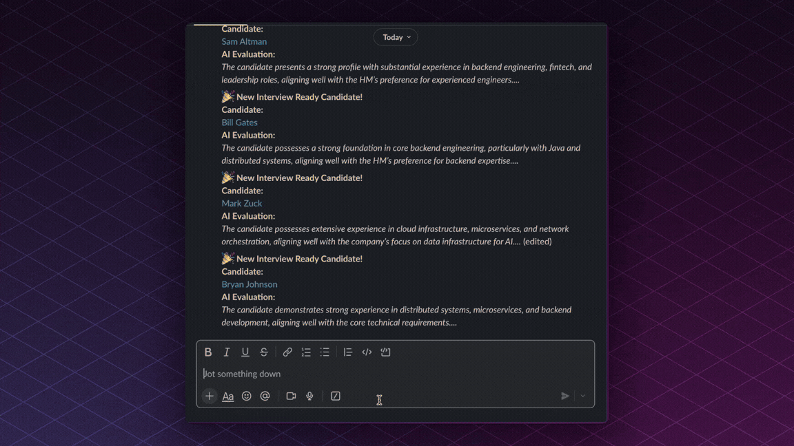 Then Perfectly will reach out and screen the best candidates, and they show up straight in your Slack.